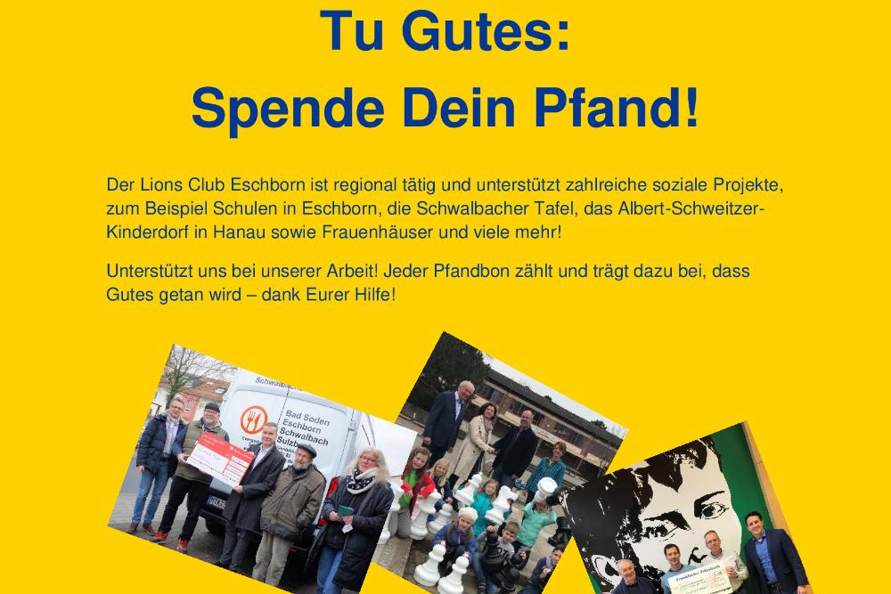 Zweck des Lions Club Eschborn ist, der Allgemeinheit zu dienen und dazu entsprechende Initiativen (Activities) zu ergreifen. Unter dem Leitwort „Wir dienen" („We serve") setzt sich der Club zum Ziel