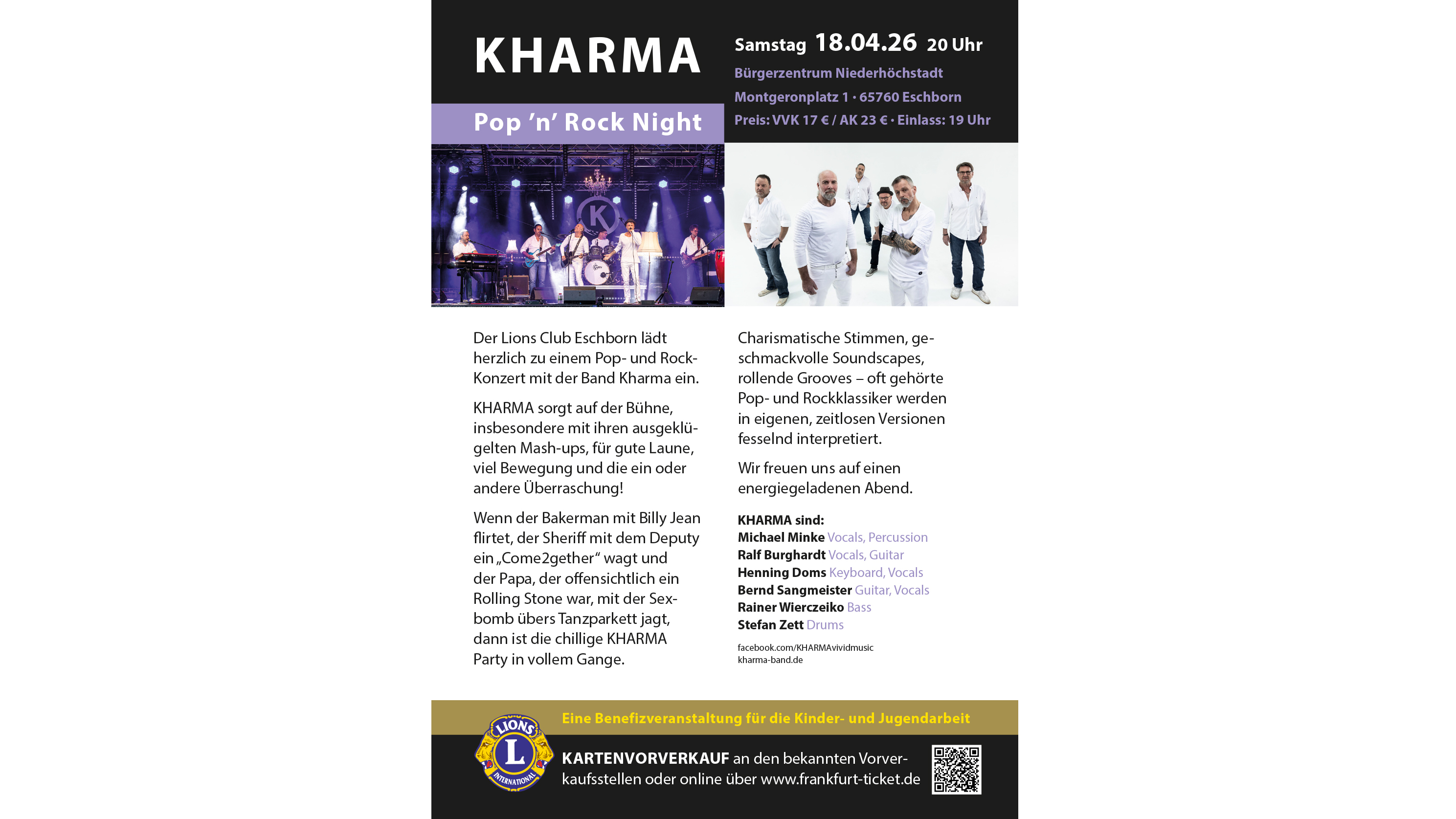 Freuen Sie sich auf ein ganz besonderes Benefiz-Konzert-Event mit besonderen Momenten und überraschenden Highlights von KHARMA!